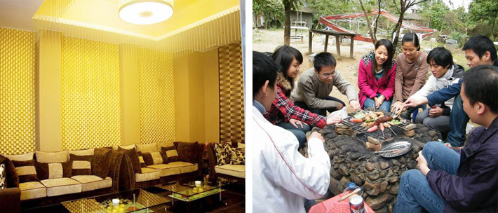 御水古温泉度假区内设有桃源谷娱乐休闲会所,桃源谷位于别墅区域的另一侧,会所内有豪华KTV包厢、棋牌室、台球室、茶道等娱乐项目。除此之外还有保健按摩中心、运动球场、烧烤场、特产购物商场等,让您放松身心,尽享休闲度假的欢乐!